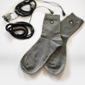 The Grounding Socks with connection tab kit includes one pair of socks, two earthing cords and one earthing plug.