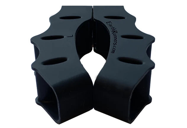 The Earth Runners toe spacers feature unique voided holes between toes to ensure a squishy feel between the toes. This novel design not only allows for a comfortable and durable design– but has many additional benefits including being lighter weight, more fashionable, more secure, more elastic for easy installation, and allows for modification of the toe spacer widths– insert material into the holes to increase spacing effects!
