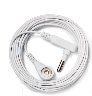 The earthing straight cord has a pod on one end to connect to the earthing product, and a prong on the other end to place into an earthing adapter plug